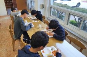 아동들이 후원자님께 감사한 마음을 가지고 떡볶이와 돈까스를 맛있게 먹으며 2021년의 마지막 날 …